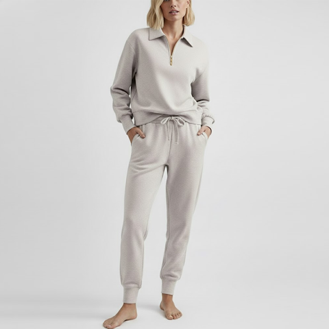 Customized long sleeve polo collar sweatshirt and jogger set for women