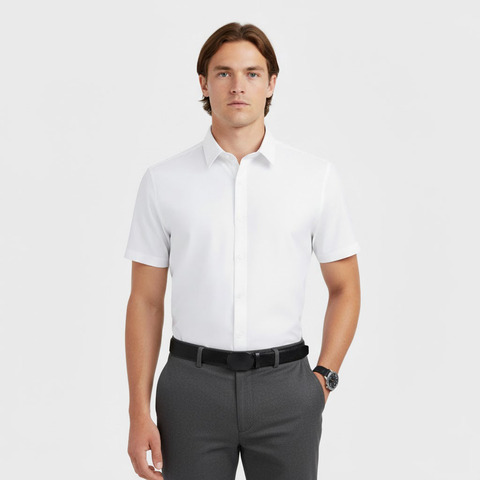 Tùy Chỉnh Rắn Poplin Chính Thức Mỏng Phù Hợp Với Ngắn Tay Áo Váy Áo Sơ Mi Cho Nam Giới